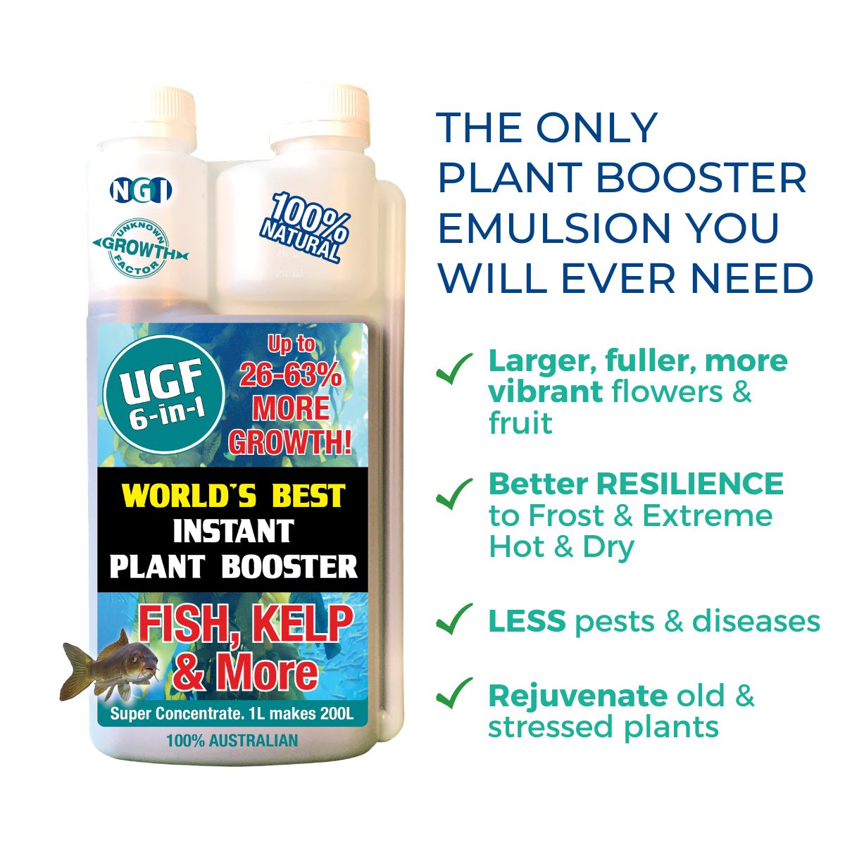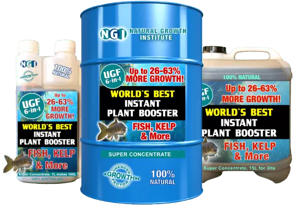 UGF 6-in-1 is a super-concentrated liquid plant booster developed by Natural Growth Institute & its Scientists over 30 years in consultation with Australia’s CSIRO in the early years.